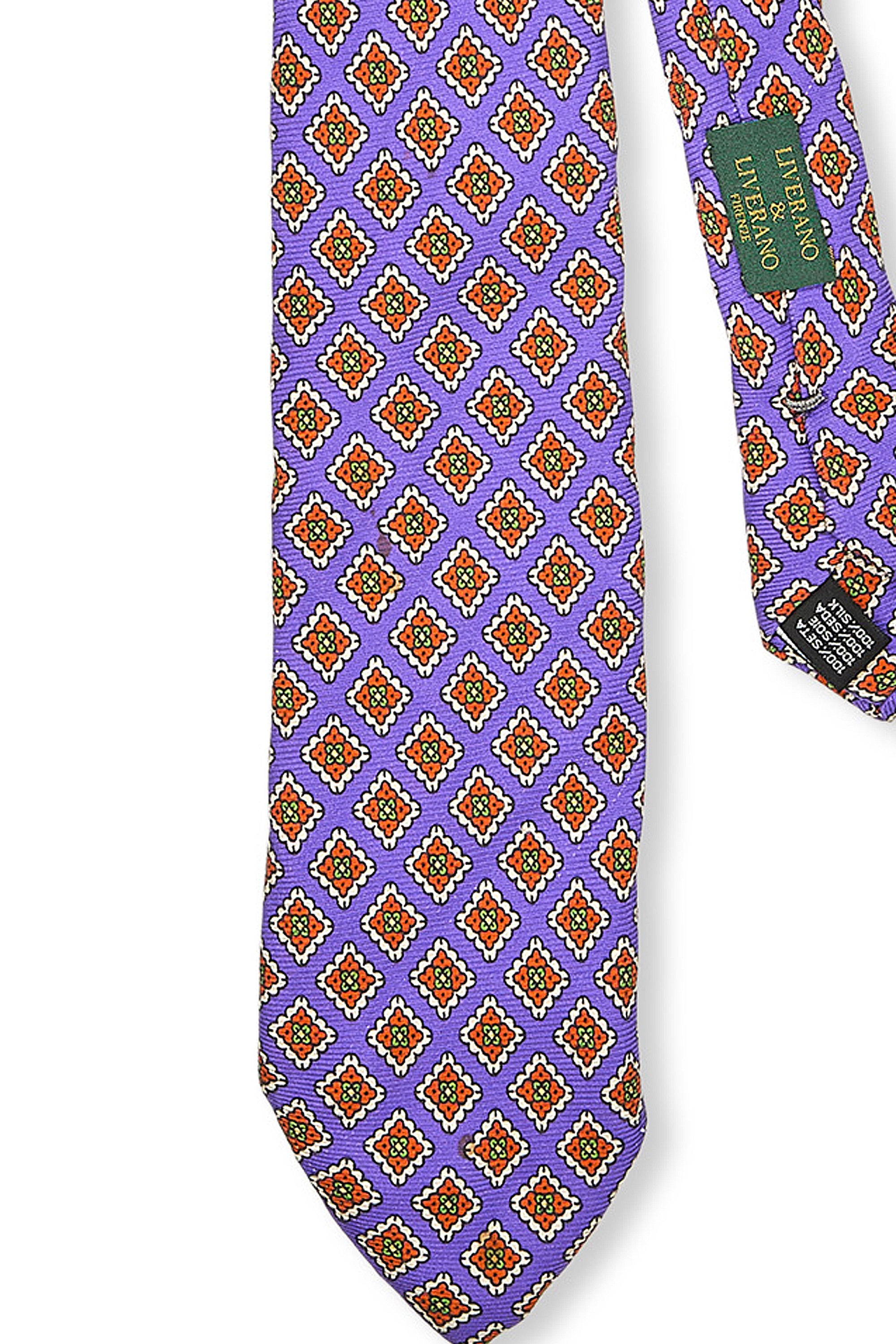 Liverano & Liverano Purple with Orange Flower Pattern Silk Tie (Pre-Owned)