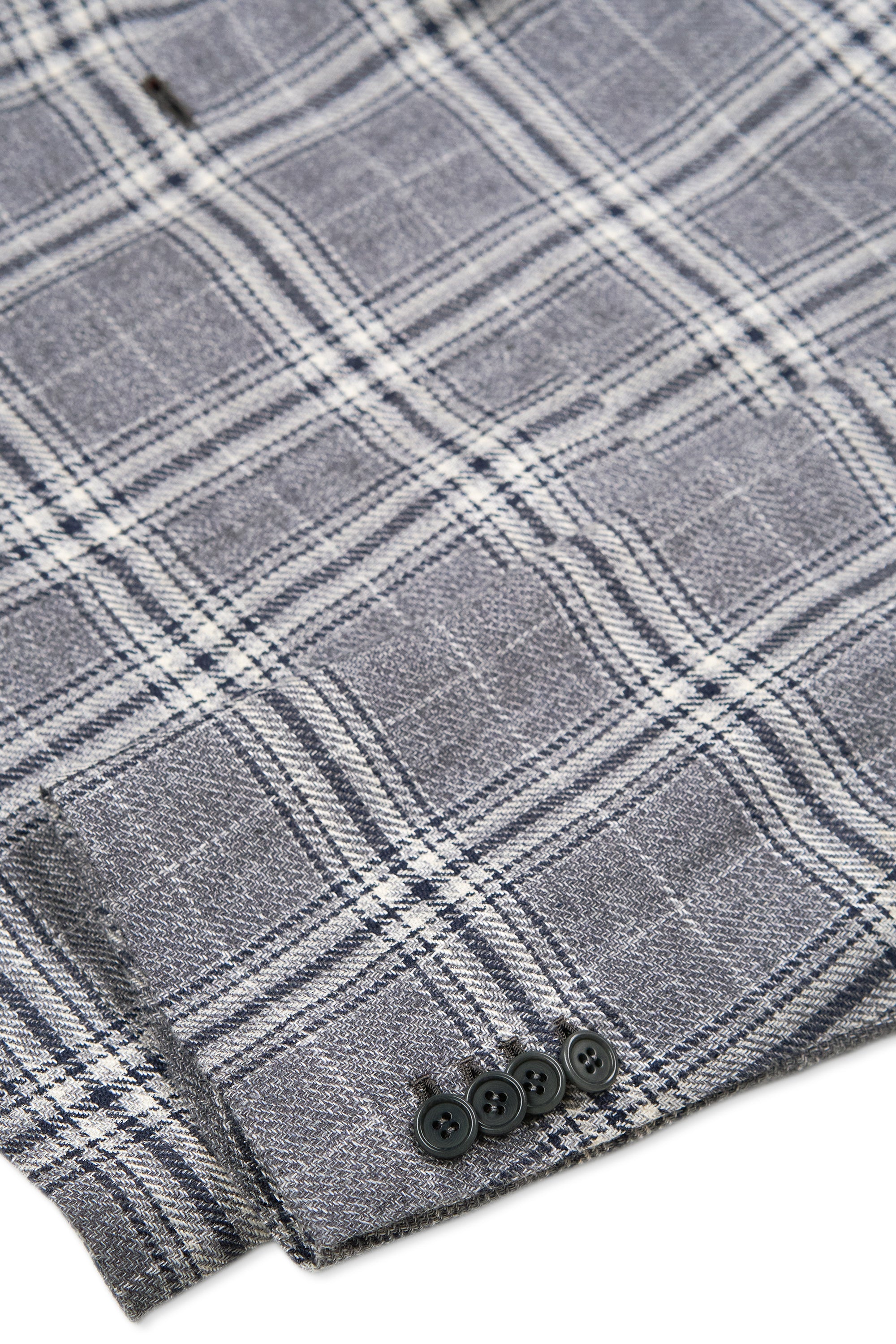Orazio Luciano Grey/Navy Check Linen/Silk/Cotton Sport Coat (Pre-Owned)