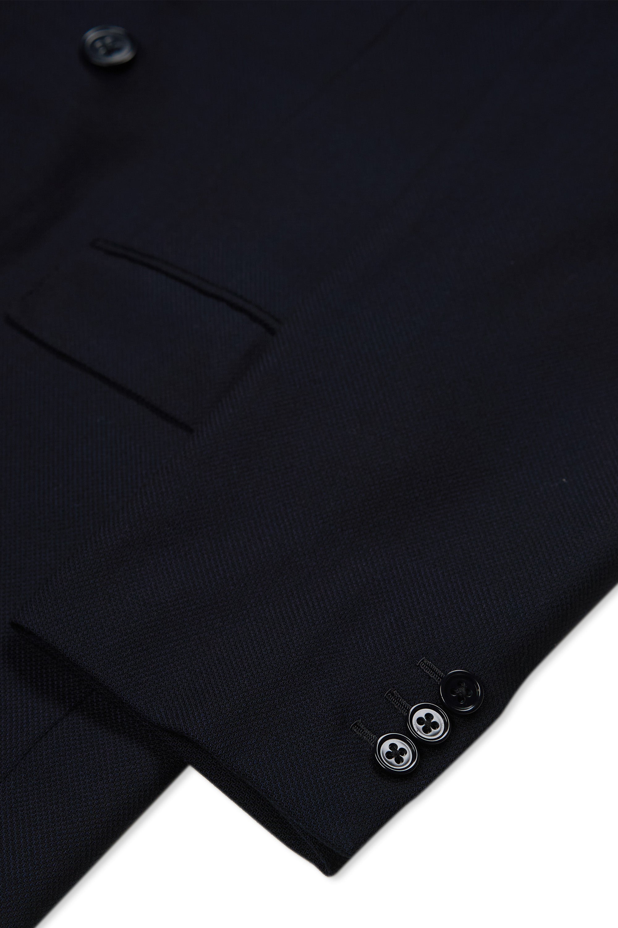 Finished sleeves with three buttons and working buttonholes