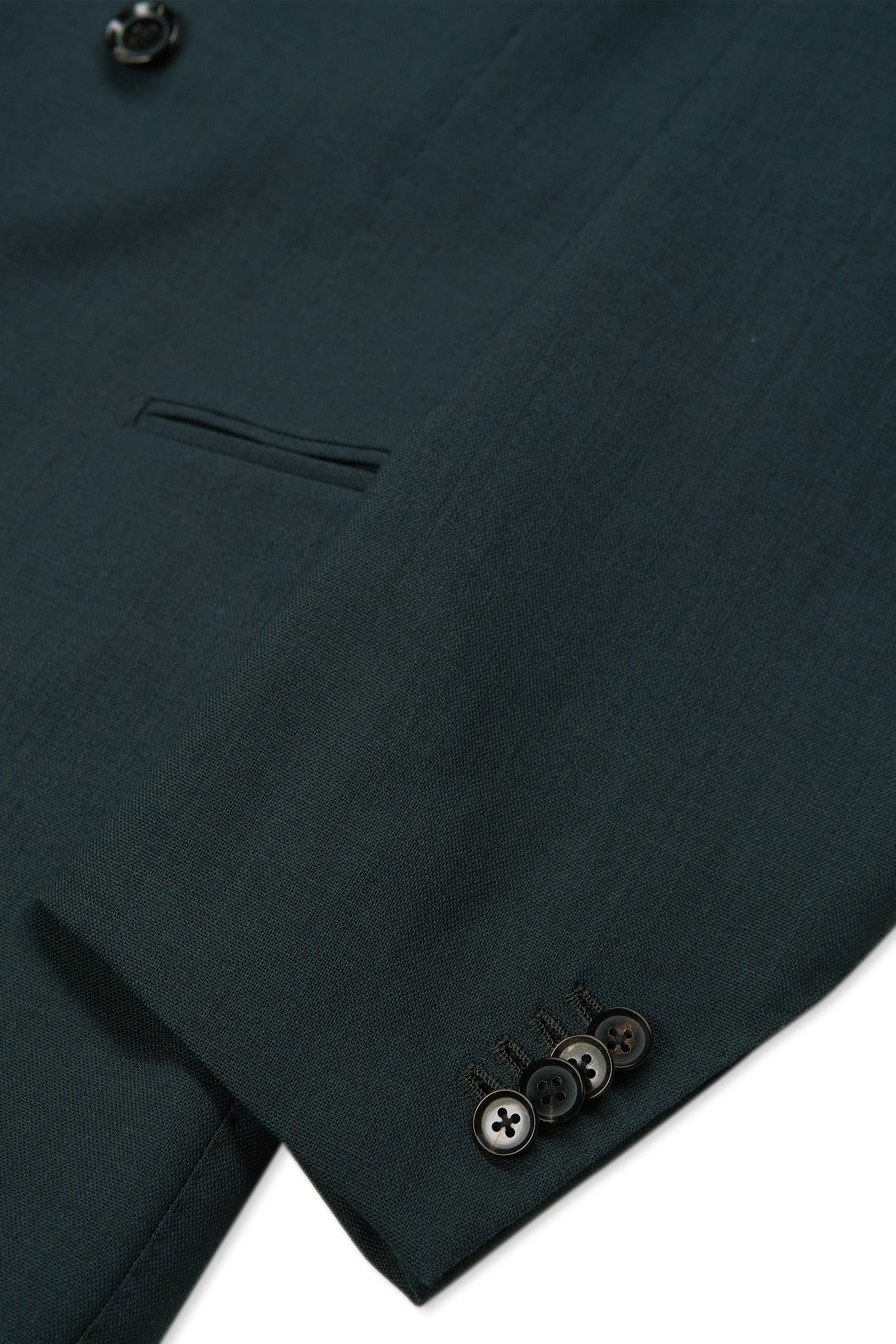Twin jetted pockets with a welted breast pocket